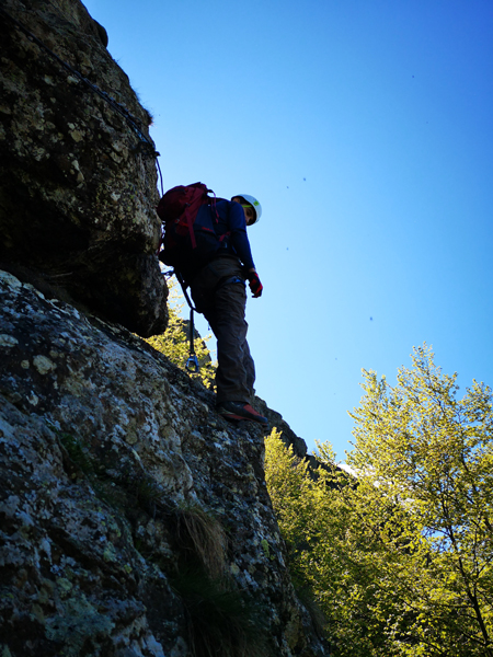 Ricordo con un sorriso la torre dei vigili del fuoco, visibile già dal cavalcavia e poi dal parcheggio, gli sguardi scambiati con i miei compagni e le domande agli istruttori “Dobbiamo calarci veramente da lassù?” “Ma proprio dall’alto?” “Non possiamo fermarci due piani più in basso?”. Mi rimbomba ancora nella testa la voce del mio istruttore “Devi imparare a fidarti del materiale!”. Voce che si è fatta più forte in Rocca del Prete, con la calata in corda doppia in ambiente.