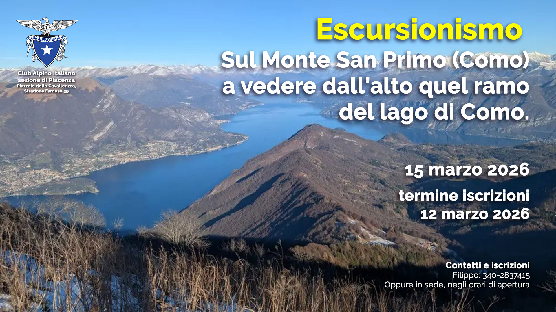 Il Monte San Primo è posizionato al vertice settentrionale del Triangolo Lariano, dove confluiscono i rami del Lago di Como e di Lecco.
