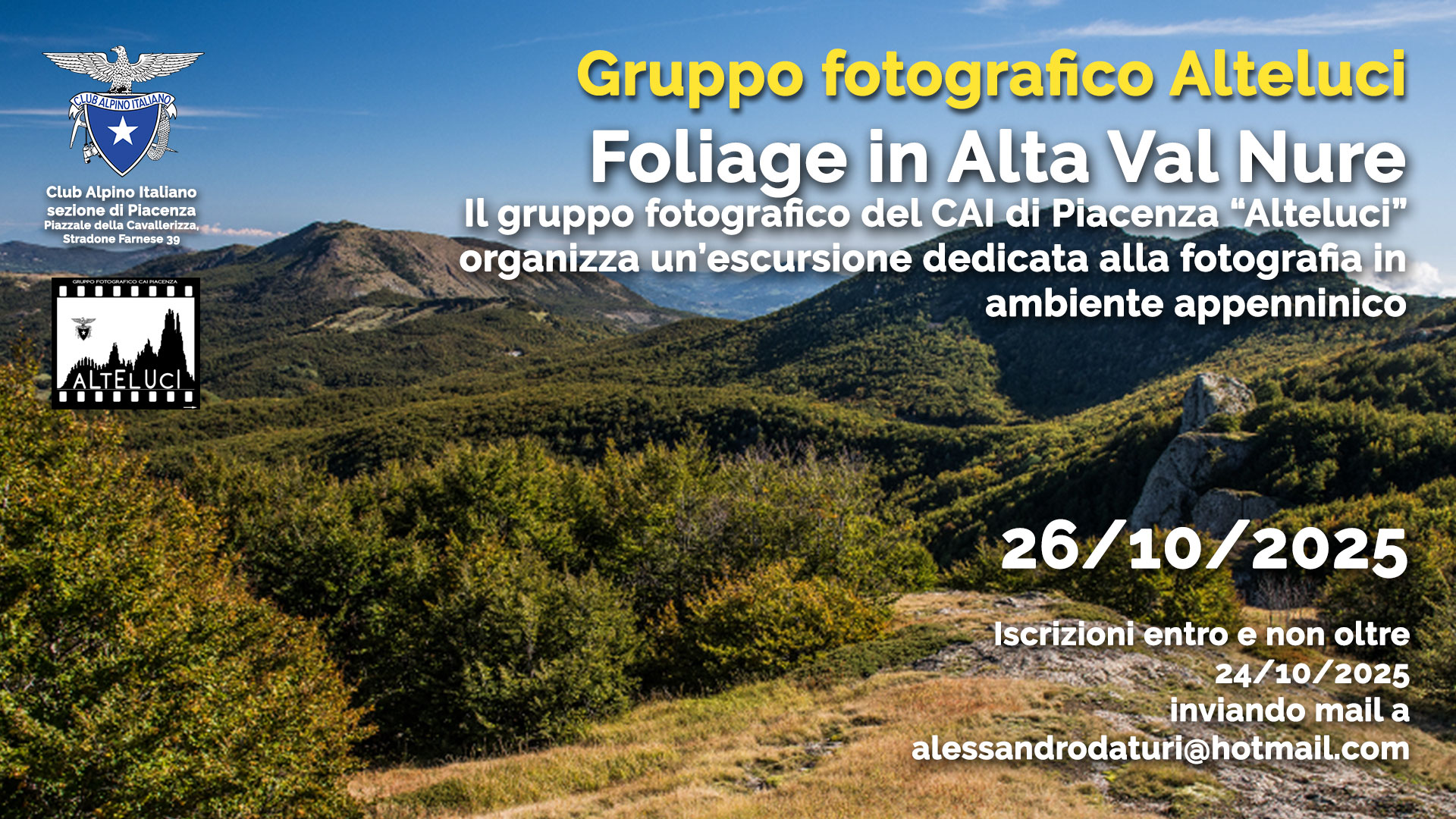 26Ott7:5018:00Foliage in Alta Val Nure7:50 - 18:00 piacenza stadio